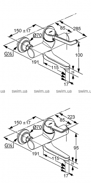 - настенный однорычажный смеситель DN 15