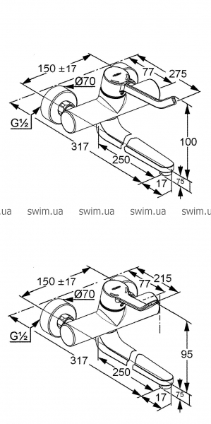 - рычаг смесителя на выбор: универсальный или спец. назначения