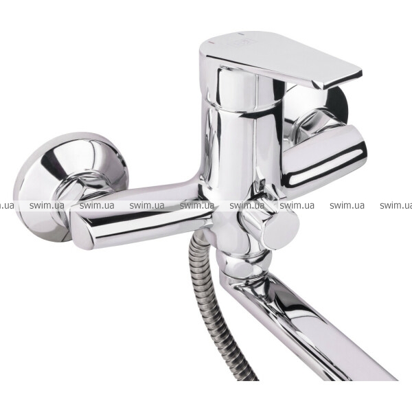 Смеситель для ванны Lidz (CRM) 19 46 005-1 New с длинным поворотным изливом изготовлен из цинка, укомплектован кронштейном для ручного душа, душевым шлангом и лейкой. Благодаря хромированному покрытию имеет прочную поверхность и привлекательный внешний вид. Декоративные розетки скроют погрешности установки на отделке комнаты. Напор воды и ее температура регулируются поворотом рычага в необходимое положение. Переключение ванна/душ осуществляется при помощи дивертора.