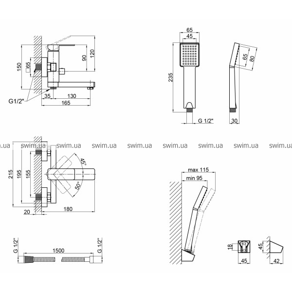 - Комплектация Смеситель, лейка для ручного душа, душевой шланг, кронштейн для ручного душа, крепеж.