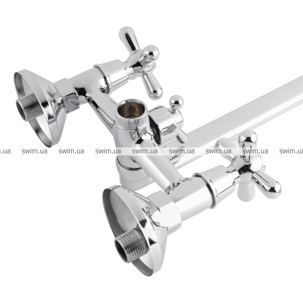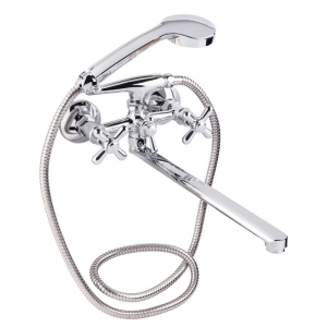 Смеситель для ванны Lidz (CRM) Dominox 15 143K с длинным поворотным изливом изготовлен из латуни, укомплектован душевым шлангом и лейкой. Благодаря хромированному покрытию имеет прочную поверхность и привлекательный внешний вид. Для включения потока воды предусмотрено два вентиля. Для переключения на душ - дивертор. Настенный монтаж осуществляется с помощью крепежных деталей, которые входят в комплект. Декоративные розетки скроют все погрешности установки на отделке ванной комнаты.