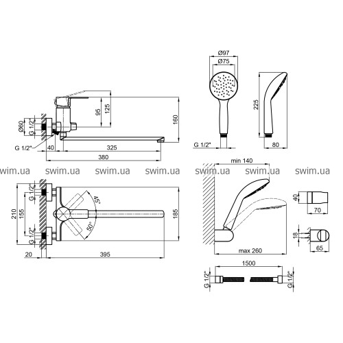 - Комплектация: смеситель, гибкая подводка, крепежи.