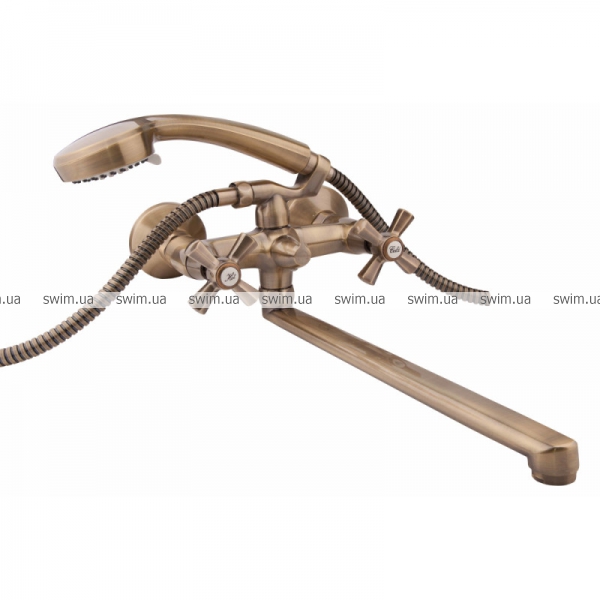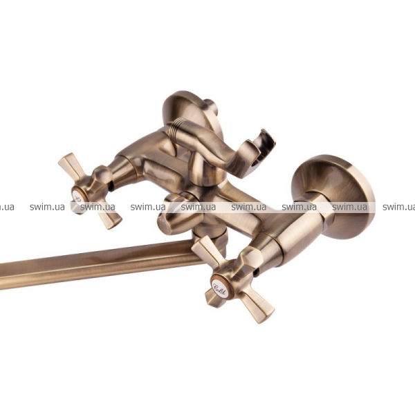 Смеситель для ванны Qtap Liberty ANT 140 с интегрированным шланговым подсоединением изготовлен из прочной и износостойкой латуни с равномерным покрытием бронзового цвета, благодаря которому изделие имеет привлекательный внешний вид и более устойчиво к механическим повреждениям. В комплектацию входит лейка и душевой шланг. Подача воды осуществляется при помощи удобных вентилей с маркировкой холодной и горячей воды, а переключение на душевой режим - поворотным дивертором.