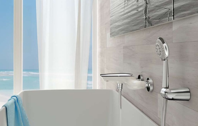 - Настенный смеситель для ванны с гибким шлангом из латуни