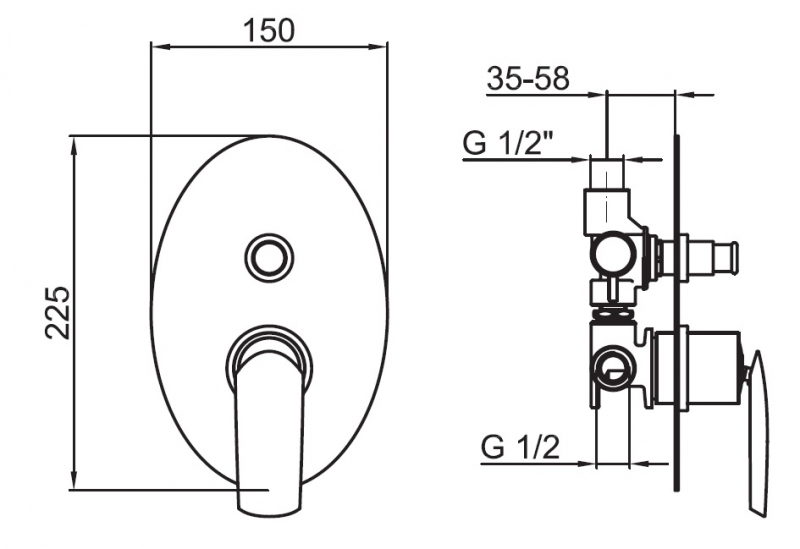 - Встраиваемый смеситель для ванны с декоративной накладкой