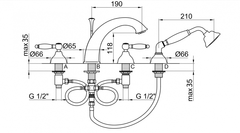 - Смеситель на борт ванны на 4 отверстия