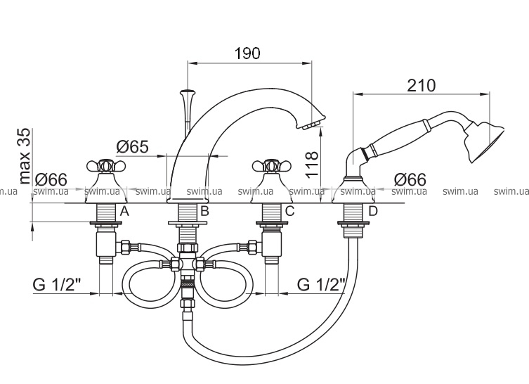 - Смеситель на борт ванны на 4 отверстия