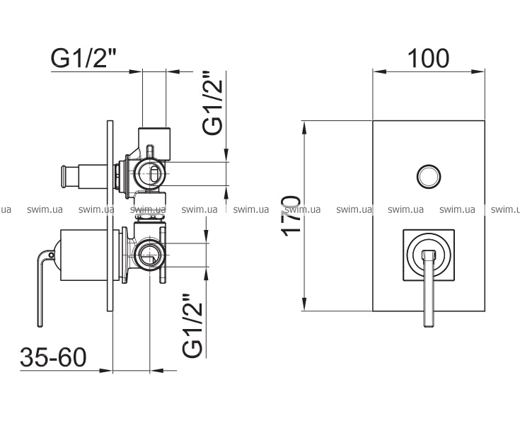 - Однорычажный смеситель встраиваемого типа для ванны с декоративной накладкой