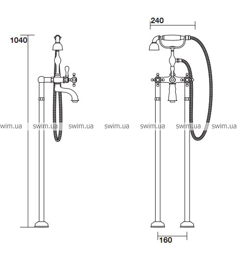 - Монтаж: вертикальный, настенный, на борт ванны при помощи переходов 7396, напольный при помощи опор 7395