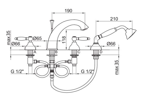 Смеситель для ванны/душа Webert Alexandra AL730101.065
