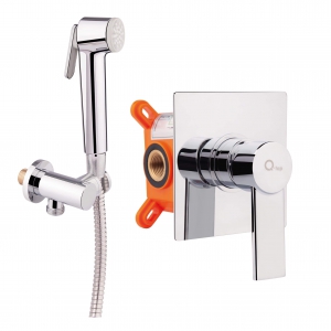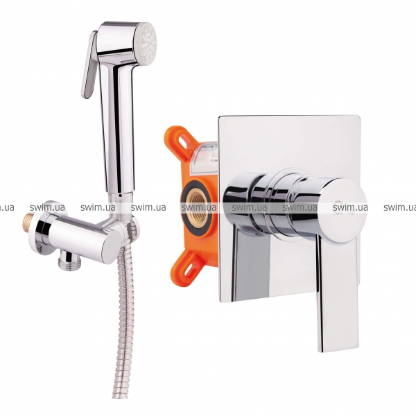 - Комплектация: смеситель со шланговым подсоединением, лейка для гигиенического душа, душевой шланг, ключ, крепежи.