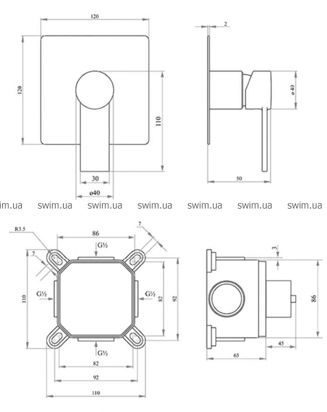 - Габариты изделия (ВхШхД), мм: 120х120х50