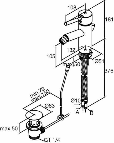 - Излив: высота 105 мм, длина 132 мм.