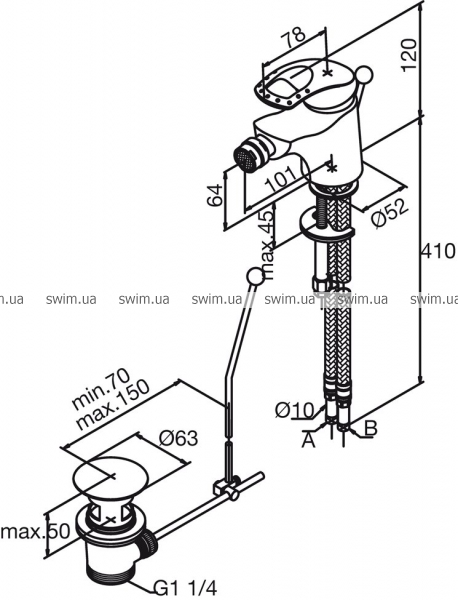 - Излив: высота 64 мм, длина 101 мм.