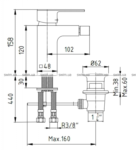 - Стандарт подводки: 3/8"