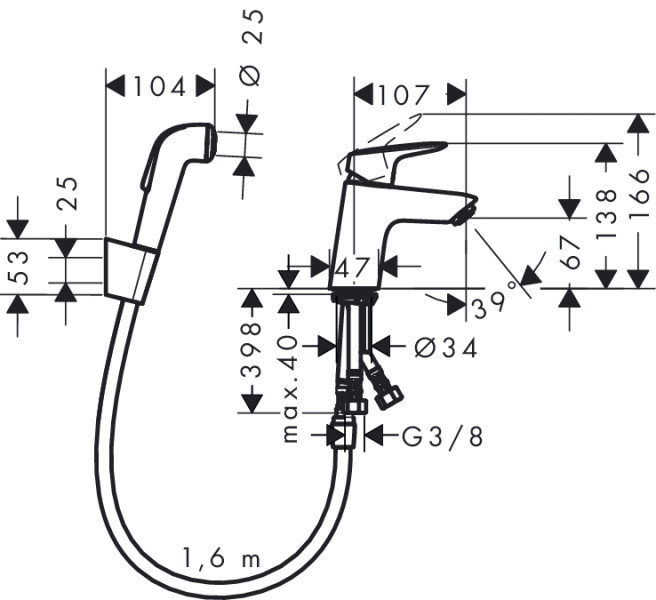 → Смеситель для умывальника Hansgrohe Logis 71290000 с гигиеническим душем