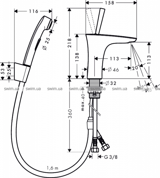 Смеситель для биде Hansgrohe PuraVida 15275400 с душем