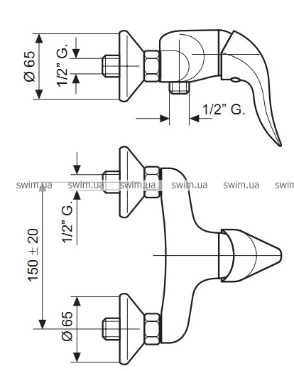 - Підключення душу G 1/2
