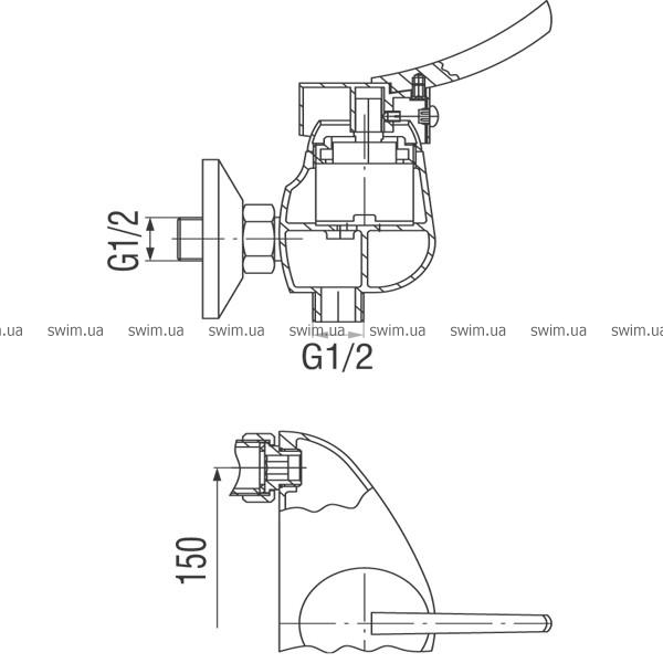 - Эксцентрика соединения G½ расстояние 150±20 мм