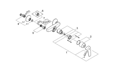 - Grohe BauFlow Однорычажный смеситель для душа, 1/2"