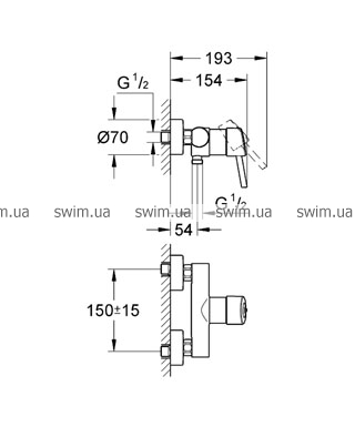 - Смеситель однорычажный для душа, DN 15