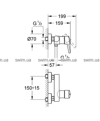 - Отвод для душа снизу 1/2" со встроенным обратным клапаном