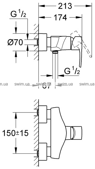 - отвод для душа снизу 1/2" со встроенным обратным клапаном