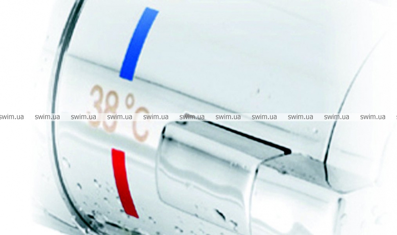 У термостатического смесителя нет рычага, но есть специальная управляющая головка, защищенная от нежелательного движения. Исключается возможность, что во время принятия душа Вы сдвинете рычаг и начнет течь горячая или холодная вода. Изменение температуры возможно в любой момент простым нажатием блокирующей кнопки. Эта защита разработана для того, чтобы любое изменение температуры воды, свыше установленного значения, было возможным только по собственному желанию, а не произвольно.