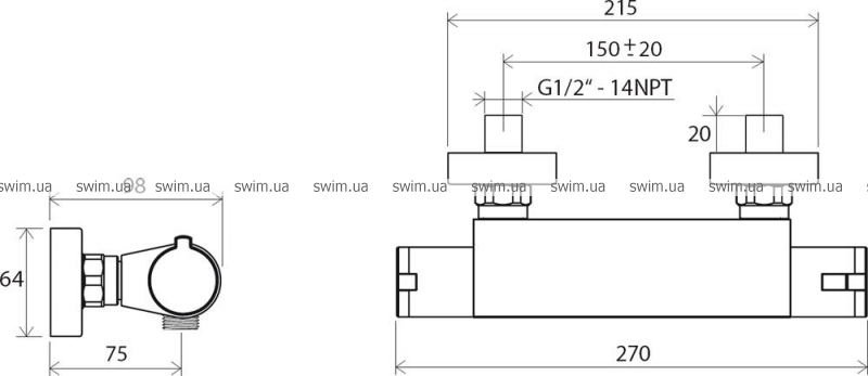 - Все настенные смесители имеют межосевой размер 150 мм.