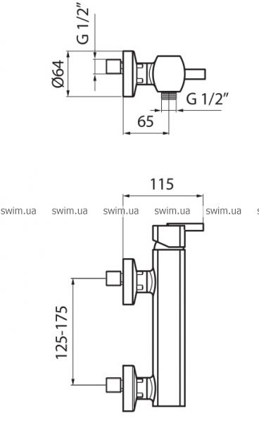 - Однорычажный настенный смеситель для душа