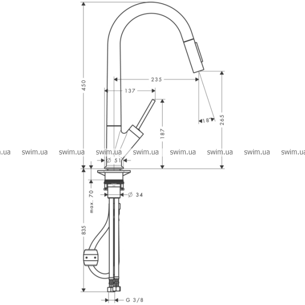 - угол поворота излива 110° / 150°