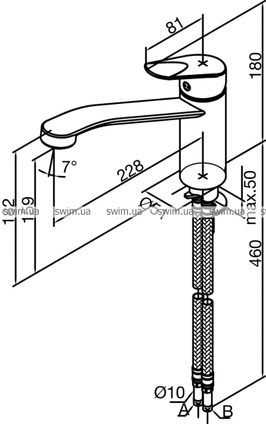 - Излив: длинна 228 мм, высота 159 мм