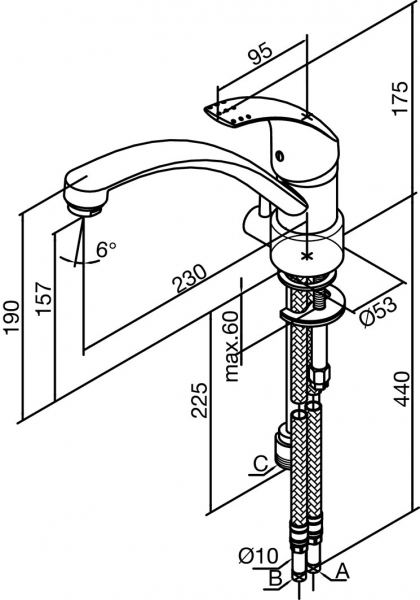 - Излив: длинна 230 мм, высота 157 мм