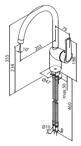 - Поворотный излив: 203 мм