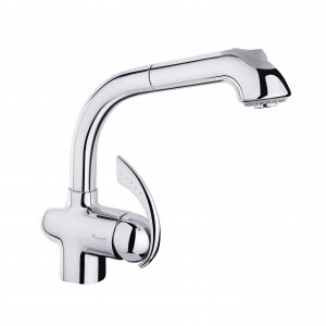 Італійські змішувачі Emmevi привертають увагу не тільки ідеальним і красивим зовнішнім виглядом, але й відчуттям надійності та якості. : CR73066 з висувним, двох режимним виливом, оснащений керамічним дисковим картриджем під один важіль змішування та регулювання холодної – гарячої води. Одноважільний змішувач Dacota – оптимальний варіант для кухні, ним легко та зручно керувати однією рукою. водяним струменем і дозволяє його використовувати для мийок як з однієї, так і двома чашами, де регулярно миється висока посуд, набагато спрощує миття овочів, посуду, включаючи високі каструлі і самої раковини. водою великих ємностей, які в раковину взагалі не поміщаються, наприклад, відра для миття підлог. Виготовлений з екологічно чистого матеріалу (латунь) з декоративним напиленням у кольорі: хром.