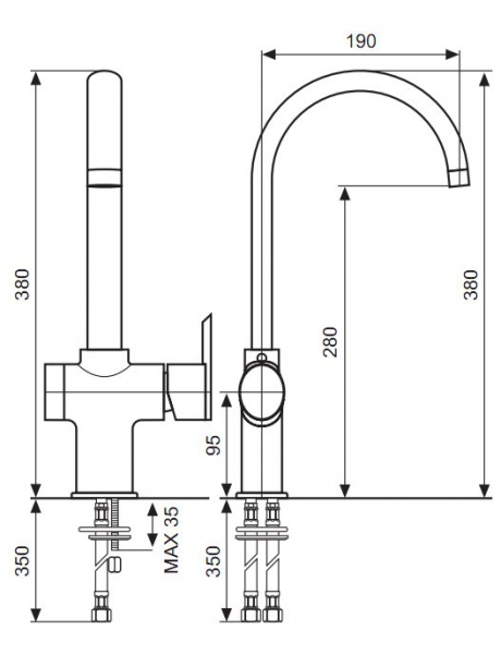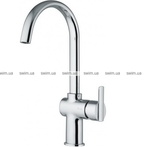 Кухонний змішувач торгової марки Emmevi колекції Elly з дугоподібним виливом оснащений картриджем з керамічними пластинами під один важіль змішування та регулювання холодної гарячої води. Одноважільний змішувач Elly - оптимальний варіант для кухні, ним легко і зручно керувати однією рукою. Має високий, дугоподібний, поворотний вилив з великим радіусом дії, збільшуючи робочий простір, що допомагає керувати водяним струменем і дозволяє його використовувати для мийок як з однією, так і двома чашами, де миється регулярно високий посуд.