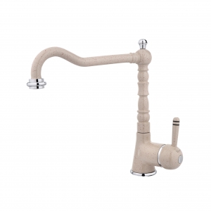 Італійські змішувачі Emmevi привертають увагу не лише ідеальним та красивим зовнішнім виглядом, але й відчуттям надійності та якості. При виборі змішувачів звертайте вашу увагу на всі деталі і куплені італійські змішувачі принесуть вам море задоволення. Високий кухонний змішувач із поворотним виливом. Верхній вилив, картридж керамічний D40 мм. Змішувач оснащений керамічним дисковим картриджем під один важіль змішування та регулювання холодної – гарячої води, литий латунний корпус. Змішувач фірми Emmevi є не лише споживчим продуктом, а й привабливим аксесуаром на Вашій кухні.