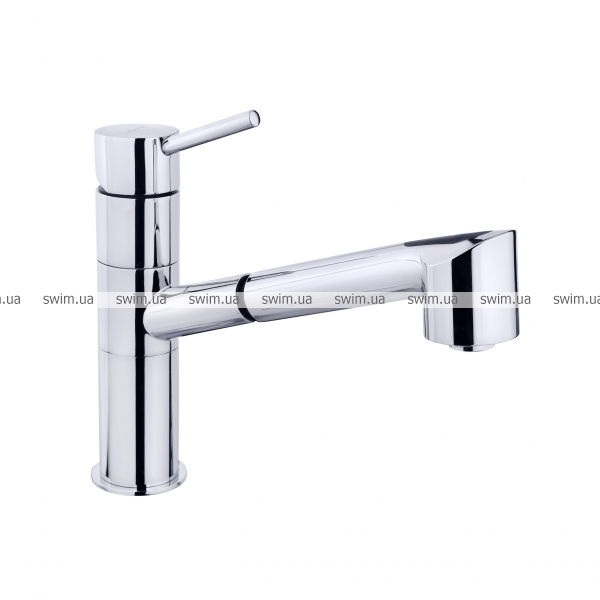 Представлений тут врізний, одноважільний кухонний змішувач CR45066 серії Piper від Emmevi, виготовлений з високоякісної латуні з покриттям хромованого кольору і має поворотний, висувний вилив з виносом в 25 см і шлангом довжиною 1.2 м. Модель встановлюється на один отвір. купуються окремо).