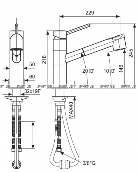 - Тип виливу – висувний/поворотний