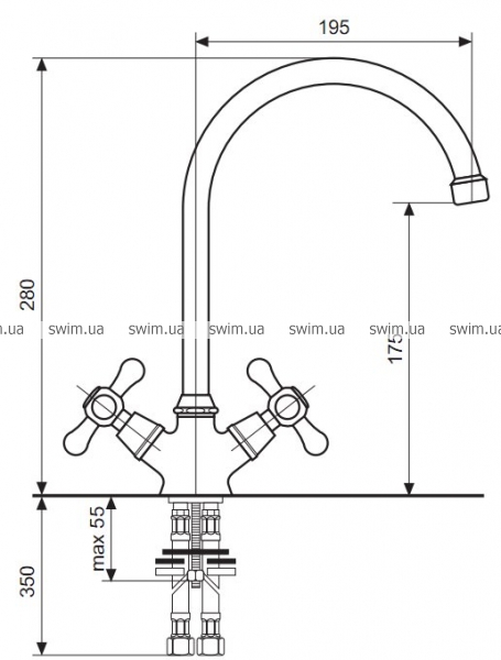 Врізний, двовентильний кухонний змішувач CR17407 серії Stella від Emmevi має довжину поворотного виливу 19.5 см і встановлюється на один отвір з підведенням води за допомогою гнучких шлангів (придбаваються окремо).