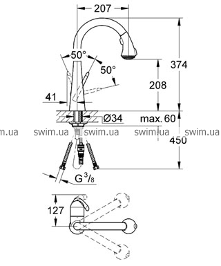 - поворотный излив