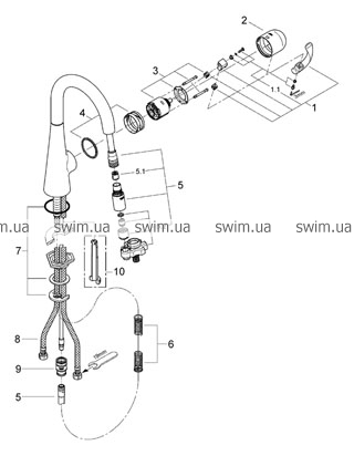 - Встроенная выдвижная лейка Dual с возвратной пружиной