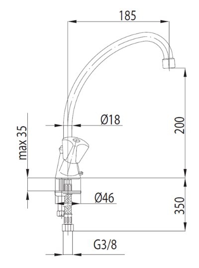 - Длина излива: 185 мм