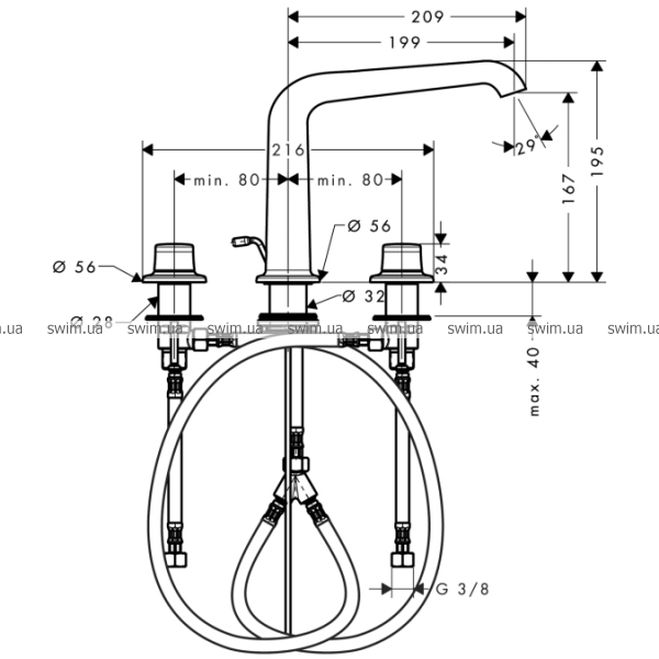• Шланговое удлинение для смесителя на 3 отверстия (38959000)