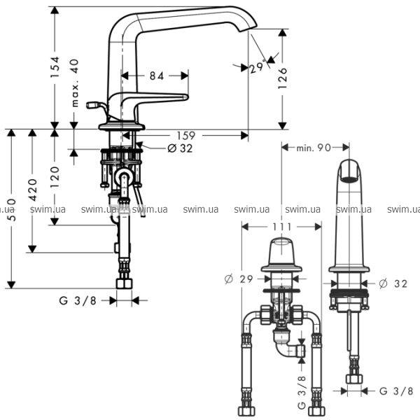 - Шланговое удлинение для смесителя на 2 отверстия (38960000)