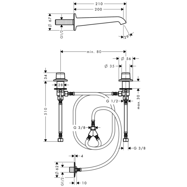 - монтаж рукояток: на раковине/консоле