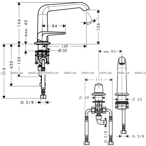 • Шланговое удлинение для смесителя на 2 отверстия (38960000)