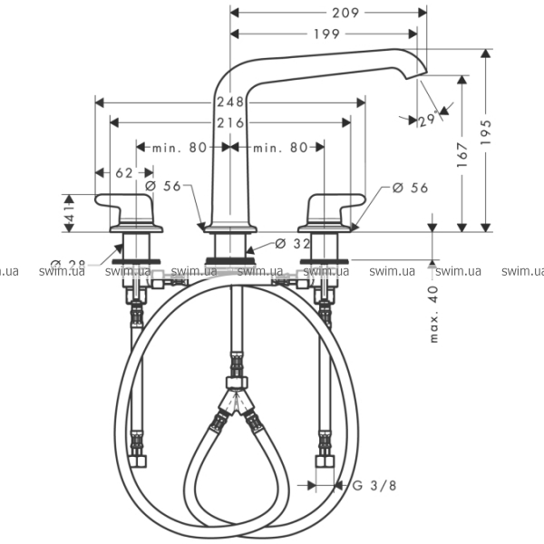- Шланговое удлинение для смесителя на 3 отверстия (38959000)