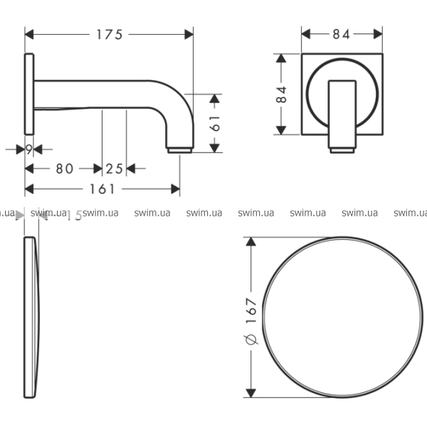 - Скрытая часть для электронного смесителя Axor, настенного монтажа, ¾’(16180180)