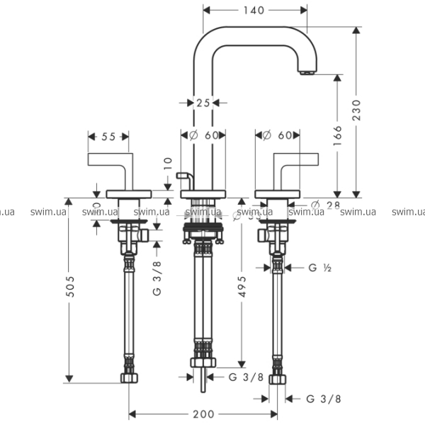 - Шланговое удлинение для смесителя на 3 отверстия (38959000)